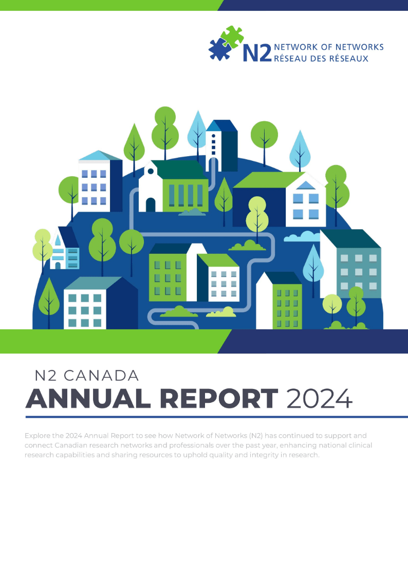 N2’s Annual Reports offer a transparent and engaging snapshot of our collective progress each year. These reports celebrate key milestones, spotlight member achievements, and reflect on the initiatives that shape Canada’s clinical research landscape. From growing our national alliance to advancing equity, streamlining operations, and strengthening public trust, each report highlights how N2’s work translates into real-world impact. Whether you’re a long-time member or learning about N2 for the first time, our annual reports offer a window into the momentum, collaboration, and shared purpose driving us forward.